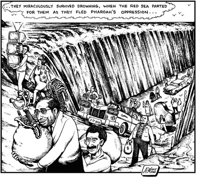 Bildeteksten på norsk: "...De overlevde mirakuløst å drukne da Rødehavet delte seg for dem da de flyktet fra Pharaoenes